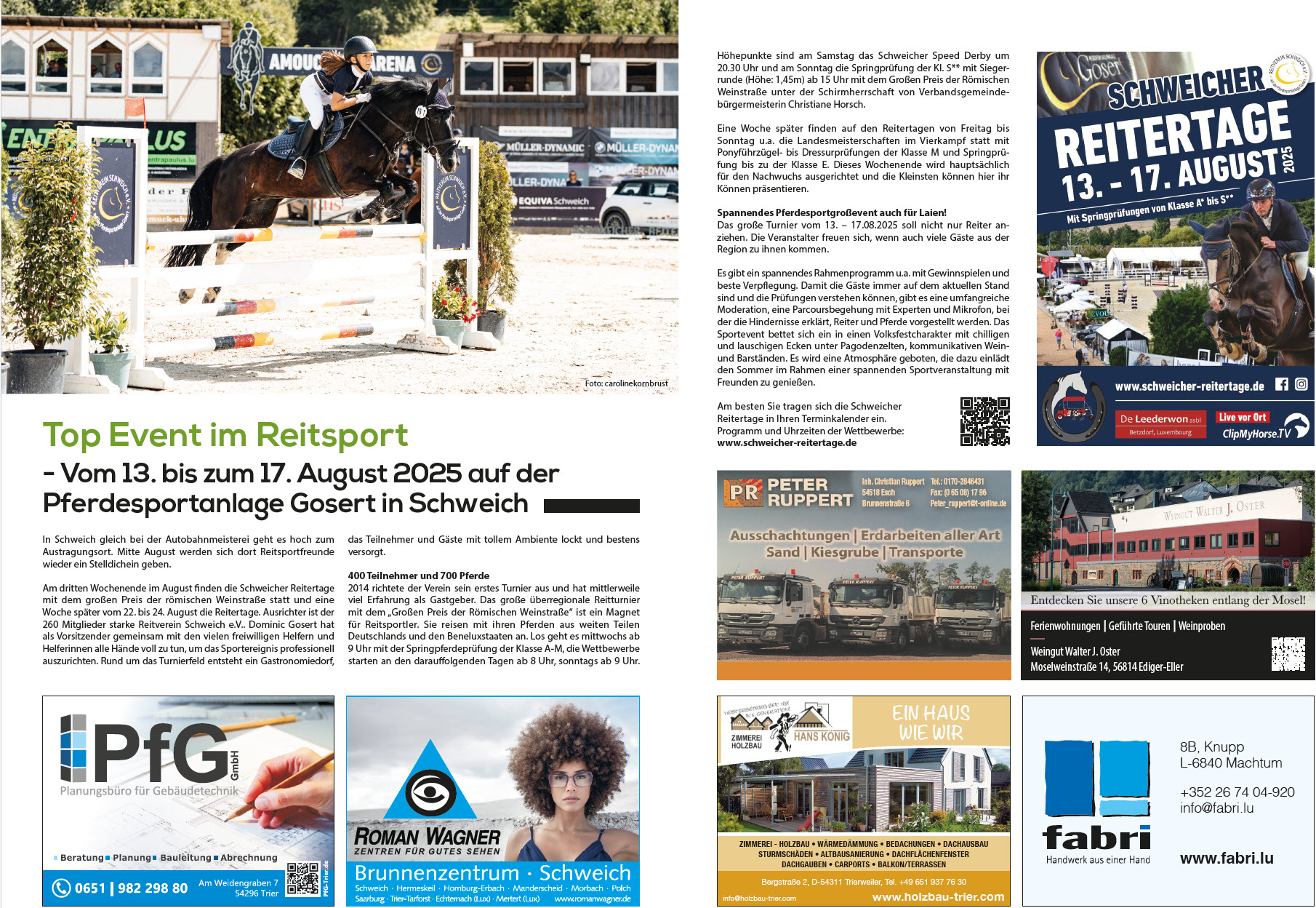 PRESSE Presse 2025 Schweicher-Reitertage vom 13. - 17.08.2025 Jugendturnier vom 23.-24.08.2025 Presse 2022 Zeitung Presse 2021 TR Volksfreund Zeitung Zeitung